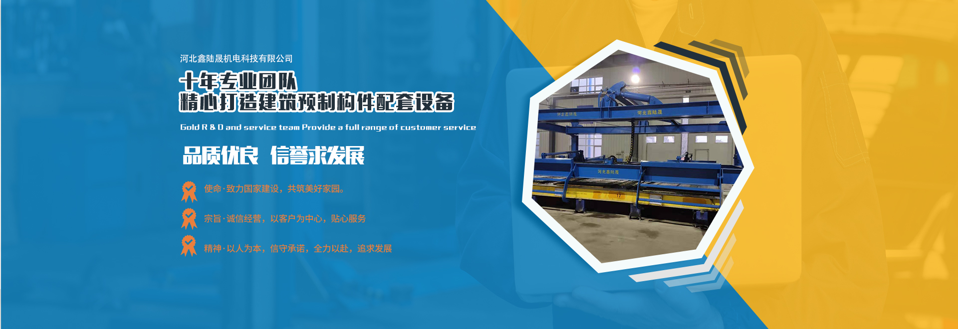 河北鑫陸晟機電科技有限公司是專業(yè)設(shè)計制造混凝土預(yù)制產(chǎn)品、PC構(gòu)件生產(chǎn)線、混凝土構(gòu)件布料機等設(shè)備的廠家。